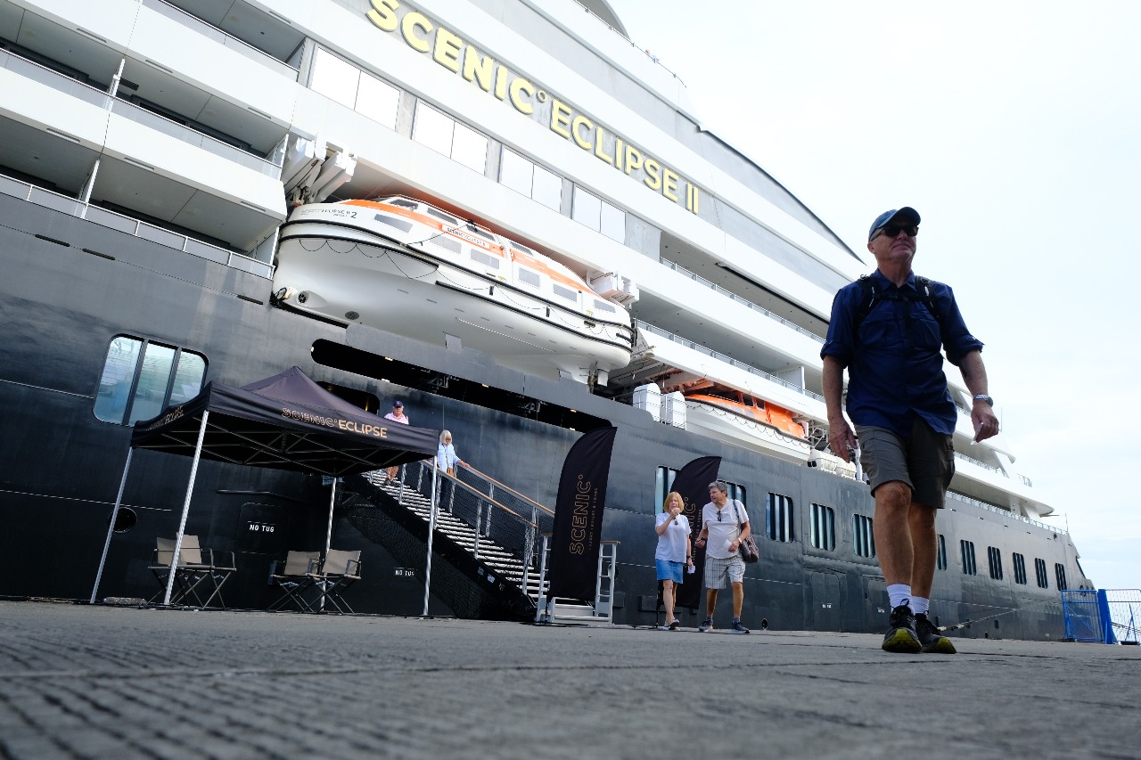 Bawa 177 Wisatawan, Kapal Pesiar Mewah Scenic Eclipse II Sandar di Pelabuhan Makassar