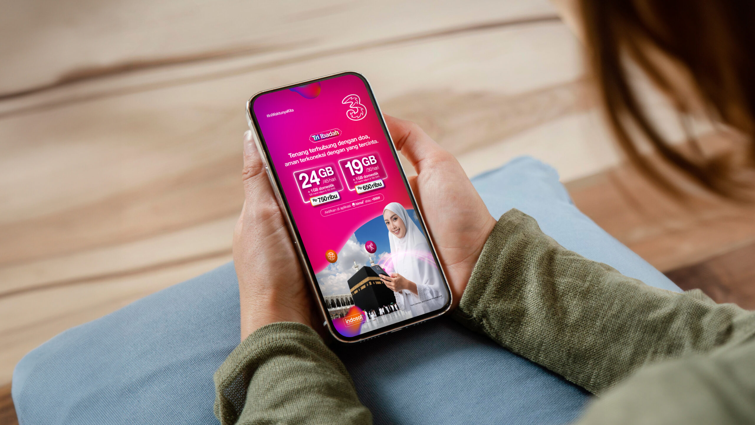 Pelanggan dapat membeli produk Tri Ibadah dengan mudah melalui aplikasi bima+, USSD *899# dan WhatsApp Tri Official 0899-9800-123. Dengan berbagai pilihan kuota dan harga yang bersaing, Tri Ibadah menjadi teman terpercaya bagi jamaah untuk tetap terhubung di momen spiritual yang penuh makna.