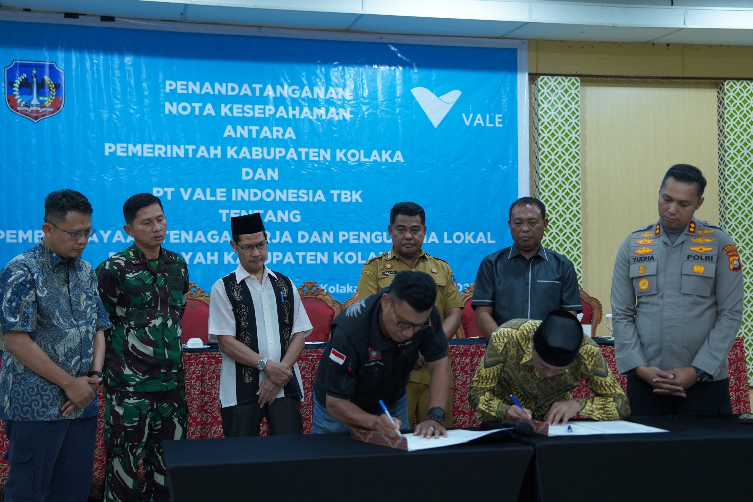 Meneguhkan komitmen untuk memberdayakan tenaga kerja dan pengusaha lokal di wilayah operasinya, PT Vale melakukan penandatanganan nota kesepahaman dengan Pemerintah Kabupaten (Pemkab) Kolaka tentang Pemberdayaan Tenaga Kerja dan Pengusaha Lokal di wilayah Kabupaten Kolaka, pada Selasa (16/9/2025), di salah satu hotel di Kolaka.