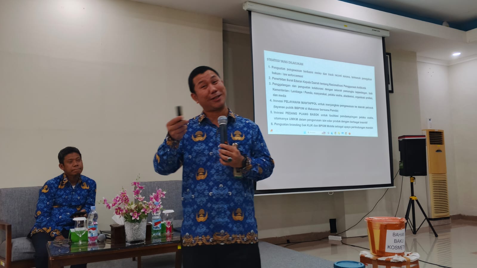 Kepala BBPOM di Makassar juga menyampaikan tantangan pengawasan terkait Anti Mikrobial Resistance (AMR) atau Resistensi Anti Mikroba. Salah satu penyebab AMR adalah mudahnya masyarkat memperoleh antibiotik tanpa resep dokter. “Berdasarkan pengawasan yang kami lakukan, Sulawesi Selatan termasuk wilayah yang tinggi angka penyerahan antibiotic tanpa resep dokter, menyentuh > 90%” terang Yosef