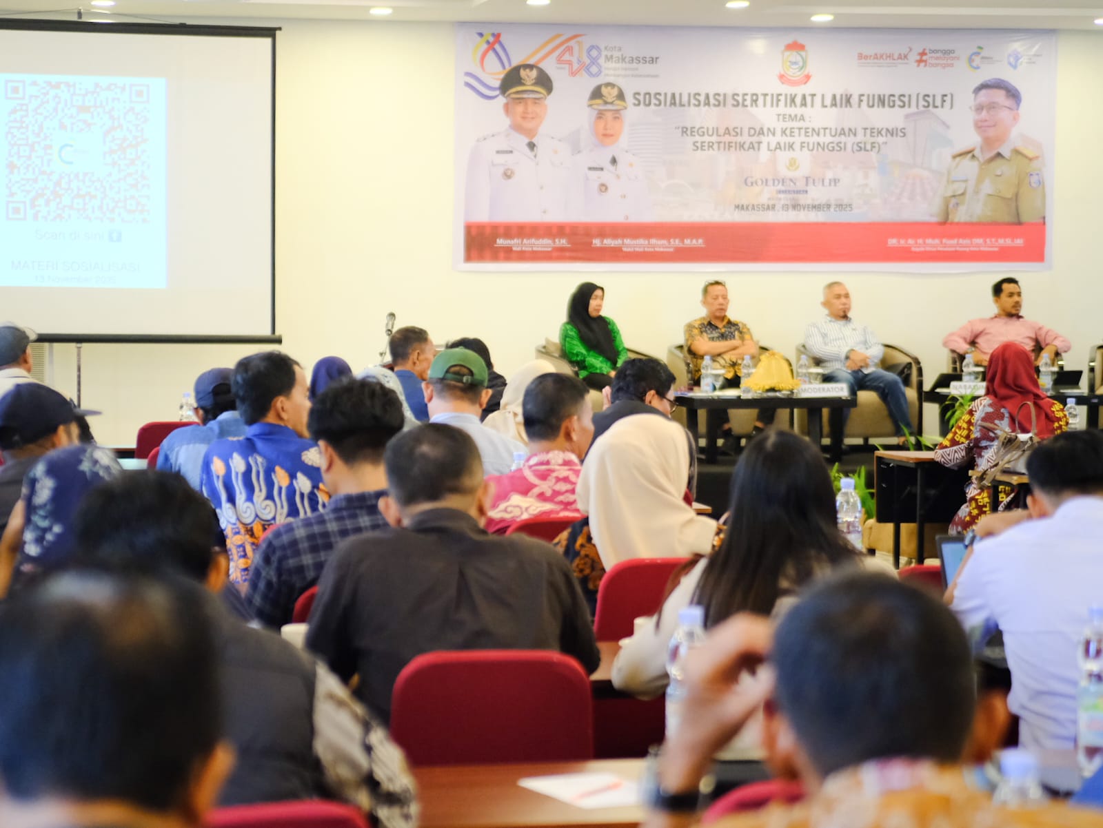 Makassar,12 November 2025,redaksimedia.com- Dinas Penataan Ruang Kota Makassar Kembali melaksanakan Sosialisasi Persetujuan Bangunan Gedung (PBG) di Hotel Grand Tulip Essential . Sosialisasi PBG hari ini mengangkat tema “ Penerapan PBG Dalam Mewujudkan Tertib Bangunan dan Gedung”.