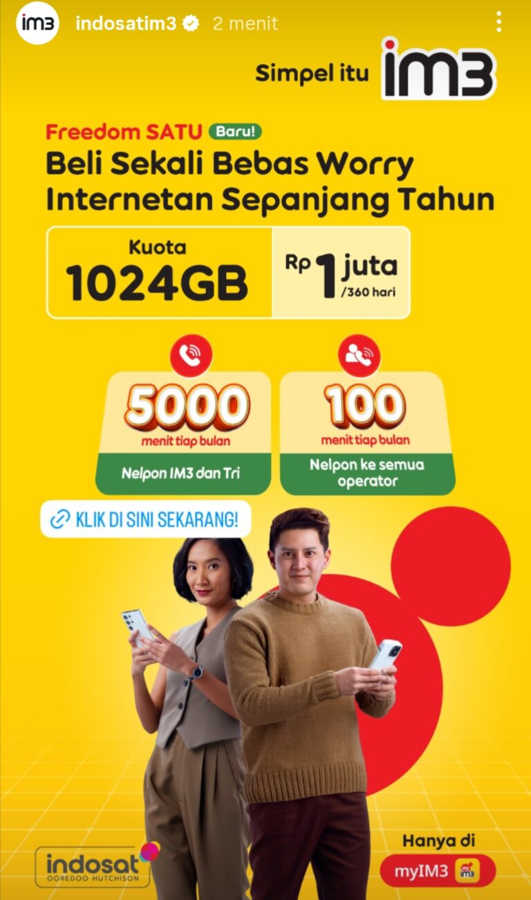 IM3 menegaskan bahwa paket Freedom SATU dapat dibeli secara eksklusif melalui aplikasi myIM3. Kampanye ini sejalan dengan tagline mereka, “Simpel itu IM3”, yang menonjolkan kemudahan dalam berkomunikasi dan berinternet.