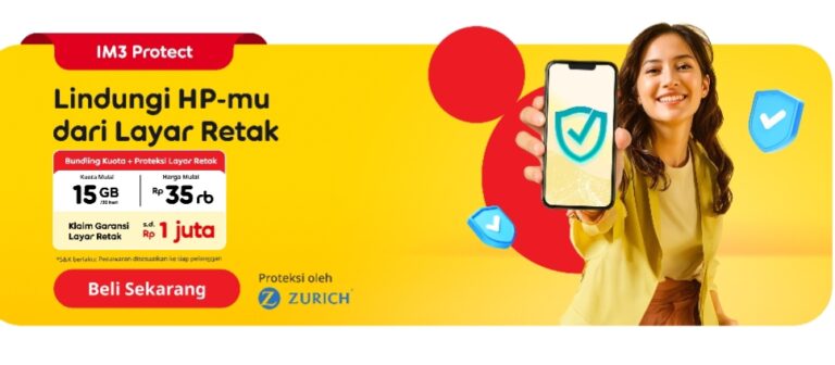 Dalam materi promosi yang ditampilkan, IM3 menawarkan paket bundling kuota internet mulai 15 GB dengan proteksi layar retak, yang bisa diperoleh dengan harga terjangkau, yakni mulai dari Rp 35 ribu. Melalui layanan ini, pelanggan berkesempatan mendapatkan klaim garansi layar retak hingga Rp 1 juta, sesuai dengan ketentuan yang berlaku.