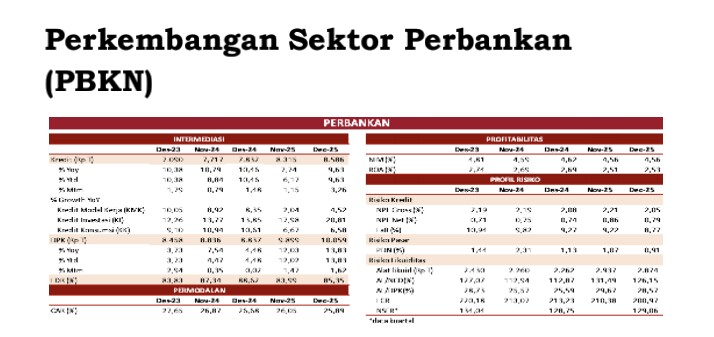 Permodalan (CAR) sebesar 25,89 persen (November 2025: 26,05 persen), menjadi bantalan mitigasi risiko yang kuat di tengah kondisi ketidakpastian global.