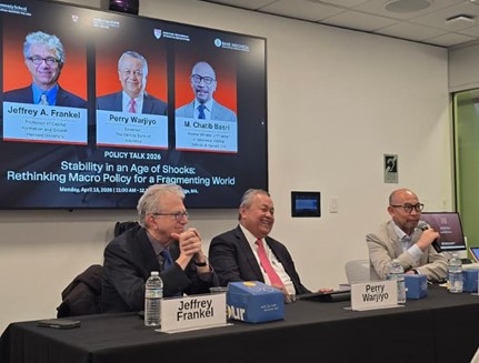 Selain itu, dalam rangkaian IMF Spring Meeting 2026, Bank Indonesia juga hadir sebagai pembicara pada diskusi bersama Profesor Harvard Jeffrey A. Frankel dan Harvard Visiting Scholar M. Chatib Basri bertajuk “Stability in an Age of Shocks: Rethinking Macro Policy in a Fragmented World.” Diskusi tersebut menyoroti semakin kompleksnya lingkungan global yang ditandai oleh fragmentasi, meningkatnya ketegangan geopolitik, serta volatilitas pasar keuangan. Frankel menekankan bahwa guncangan global semakin sering terjadi dan sulit diprediksi sehingga meningkatkan risiko tekanan terhadap perekonomian global. Menanggapi hal tersebut, Perry menegaskan bahwa bauran kebijakan yang kredibel, fleksibel, dan terkoordinasi menjadi kunci untuk menjaga stabilitas sekaligus mendorong pertumbuhan berkelanjutan di tengah ketidakpastian global.
