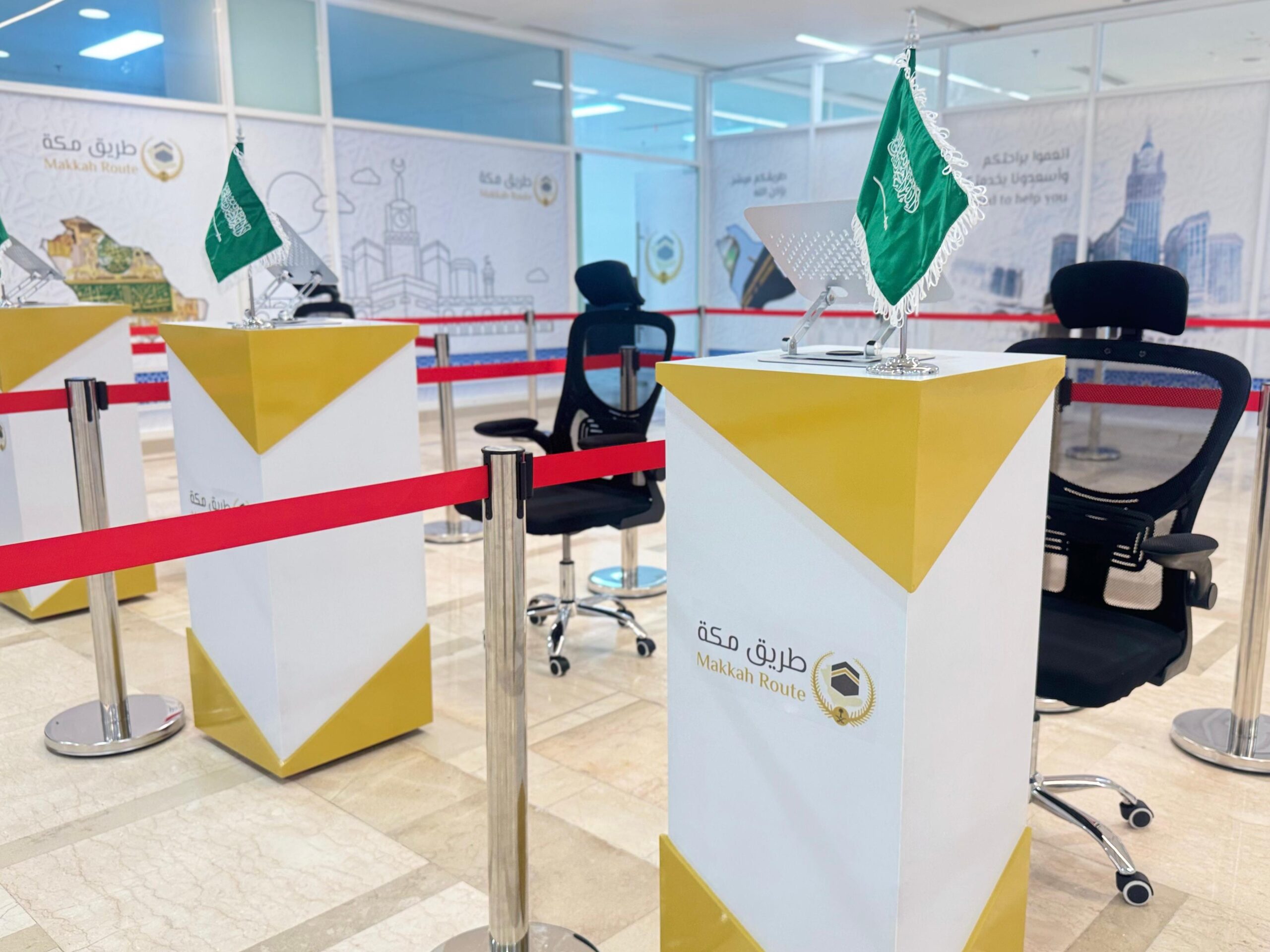 Sebanyak 7 counter Mecca Route telah disiapkan untuk mendukung proses pemeriksaan dokumen keimigrasian Arab Saudi yang dilakukan sebelum keberangkatan.